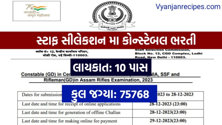 SSC Constable GD: સ્ટાફ સીલેકશન મા 10 પાસ માટે કોન્સ્ટેબલ ભરતી, કુલ જગ્યા 75000 થી વધુ